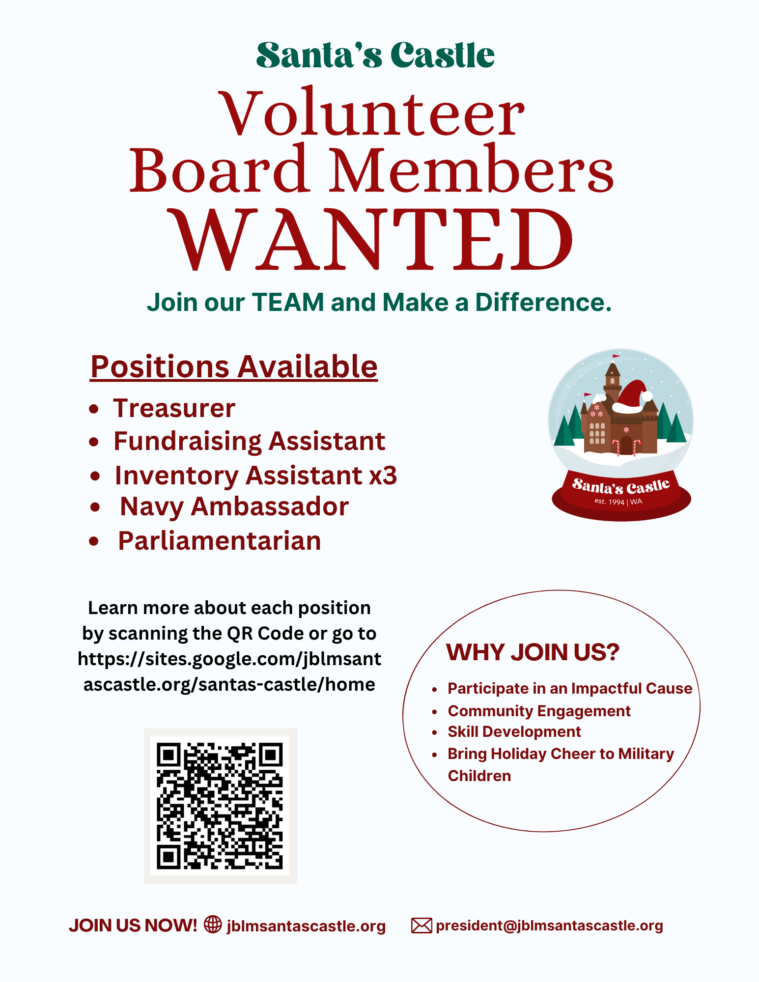 at Santa's Castle is to ease holiday stress by providing new toys, board games and books to Active Military Families in Washington who are experiencing financial hardships.
